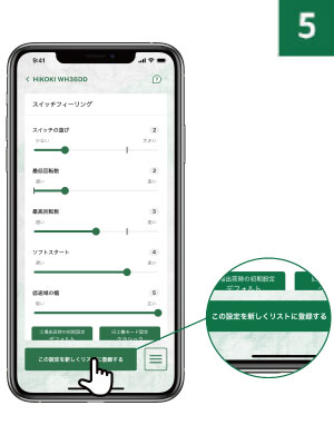 気に入った設定があったら「この設定を新しくリストに登録する」をタップすると、新たな設定として保存されます。