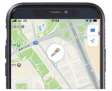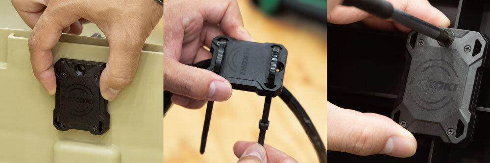 工具や工具ケースにトラッカーを装着。手元から離れると※メッセージが届くので、現場での紛失や未回収防止に役立ちます。