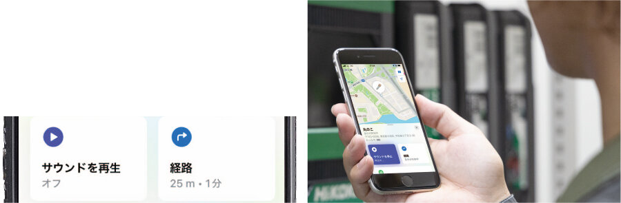 荷物や工具に取り付けて、スマホでいつでも位置確認