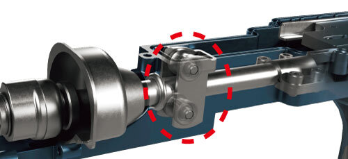 焼結メタルからニードルベアリングによる支持構造へ改良。防じん用のOリングは耐摩耗性のフッ素ゴムを採用。