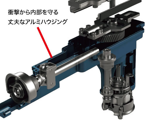 すべての駆動部品を保持するアルミハウジング構造により、不意な落下などの衝撃を受けても、内部部品の精度をしっかり保持します。