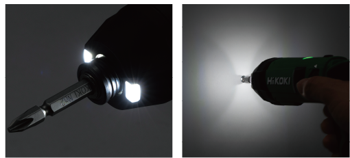 2灯搭載したLEDライトによりビットの影が減り、先端が見やすくなりました。スイッチ操作後も、約10秒間点灯します。