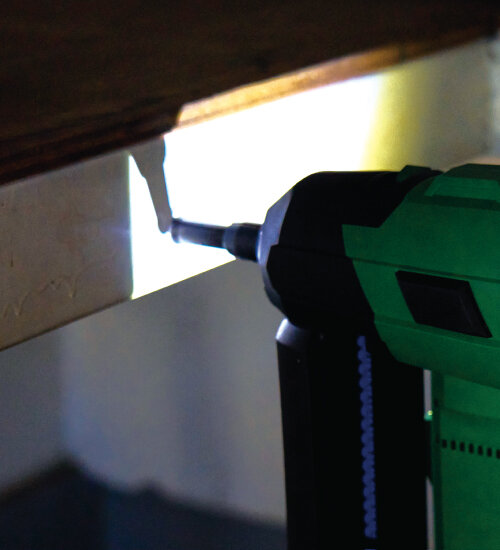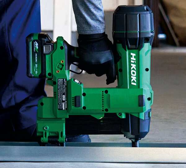 当社初※のエアスプリング方式を採用し、空気圧駆動ならではのロスの少ない効率的な打込みを実現。H鋼などの鋼材下地にも直接打込めるパワーで、内装施工をはじめ幅広いシーンで活躍します。
